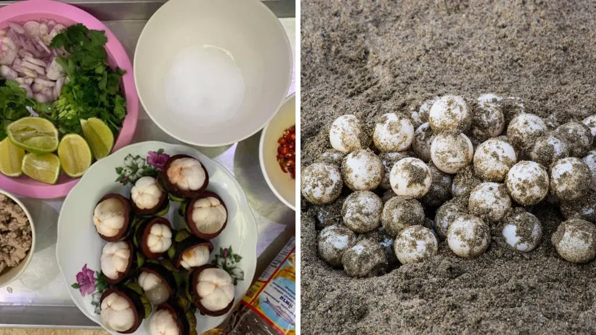 #ไข่จะละเม็ด #ไข่เต่าทะเล #ยำไข่จะละเม็ดมังคุดคัด #อาหารโบราณ #อนุรักษ์เต่าทะเล #เรื่องไม่รู้รอบตัว #เมนูชาววัง