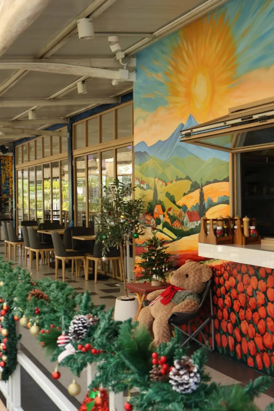 ก้าวแรกที่เดินเข้าไป คุณจะสัมผัสได้ถึงกลิ่นอายสไตล์ยุโรปคันทรี ตัวอาคารหลักออกแบบเป็นบ้านไม้ทรงสวยที่ดูอบอุ่น บรรยากาศโดยรอบถูกจัดสรรอย่างลงตัว มีทั้งคลองเล็กๆ ไหลผ่านให้ความรู้สึกเย็นสบาย พื้นที่ของร้านกว้างมากจนทำให้ไม่รู้สึกอึดอัด แม้วันที่มีลูกค้าเยอะก็ยังมีมุมส่วนตัวให้ได้นั่งพักผ่อน โซนที่นั่งมีให้เลือกเพียบ ทั้งห้องแอร์เย็นฉ่ำสำหรับคนกลัวร้อน หรือถ้าใครอยากรับลมธรรมชาติ แนะนำโซนซุ้มริมน้ำที่ตกแต่งได้น่ารักสุดๆ