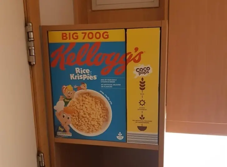 26. กล่องซีเรียลของเราวางบนในชั้นวางนี้ได้อย่างสมบูรณ์แบบ