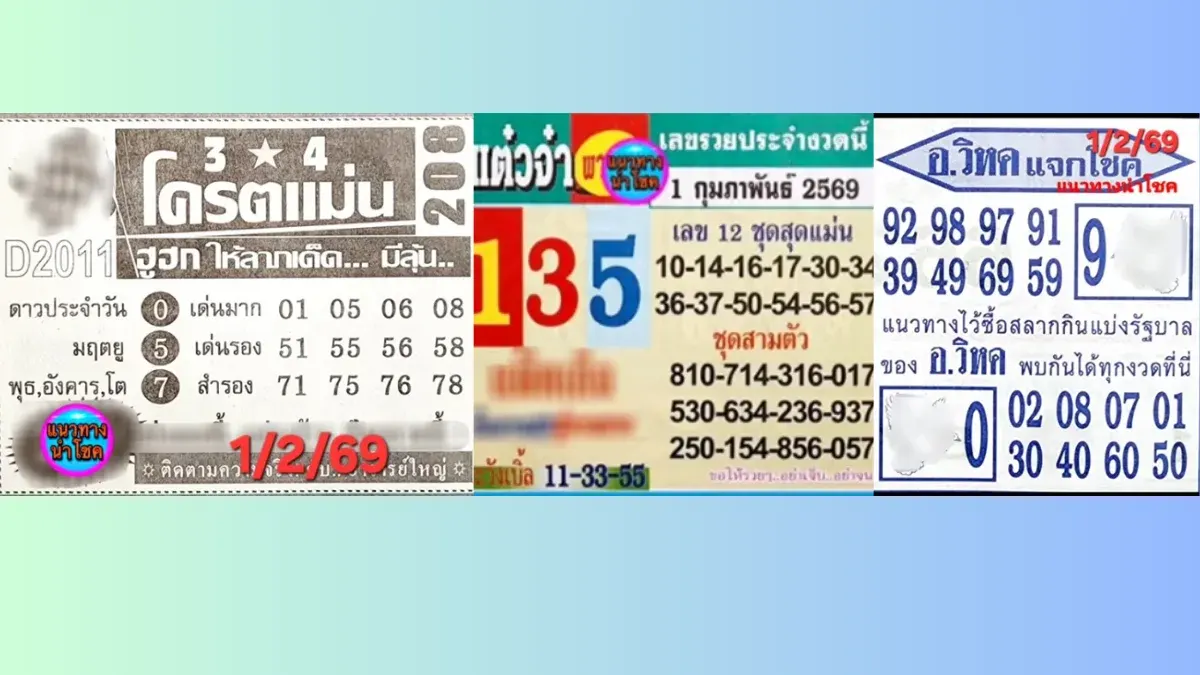 ส่องเลขเด็ดงวด 1 ก.พ. 69: มัดรวมแนวทางจากสำนักดัง "ปานจันทร์-เพชรบูรพา"