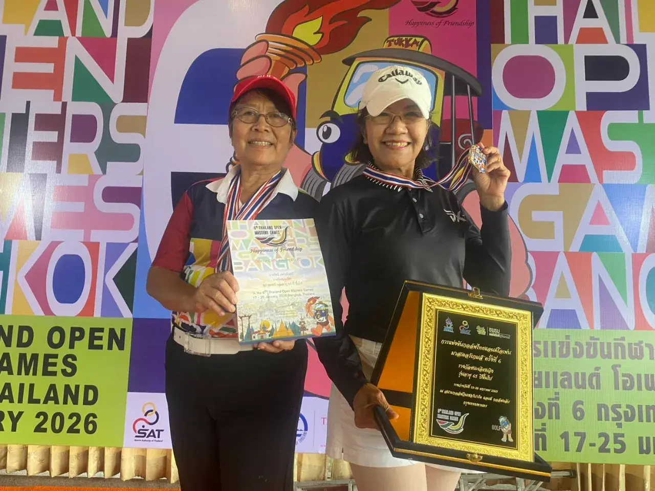ลุงป๊อก-ชนกานต์ สุทธิพันธุ์ อายุ 78 ปี กรรมการพัฒนากีฬาภาค สมาคมกีฬากอล์ฟฯ คว้าแชมป์รุ่น อายุ 75 ปี ขึ้นไป ชาย กอล์ฟ กีฬาสูงอายุนานาชาติ ไทยแลนด์ โอเพ่น มาสเตอร์เกมส์ ครั้งที่ 6 เล่นกอล์ฟ โดยไม่มีโรคประจำตัว ส่วนฝ่ายหญิง ป้าตุ๊ก-ไพรวัลย์ หอมจำปา อายุ 68 ปี ได้รองแชมป์ รุ่นอายุ 65 ปี ขึ้นไป เปิดใจมาเล่นกอล์ฟ เพราะเป็นวัยทอง กีฬาช่วยให้แข็งแรง