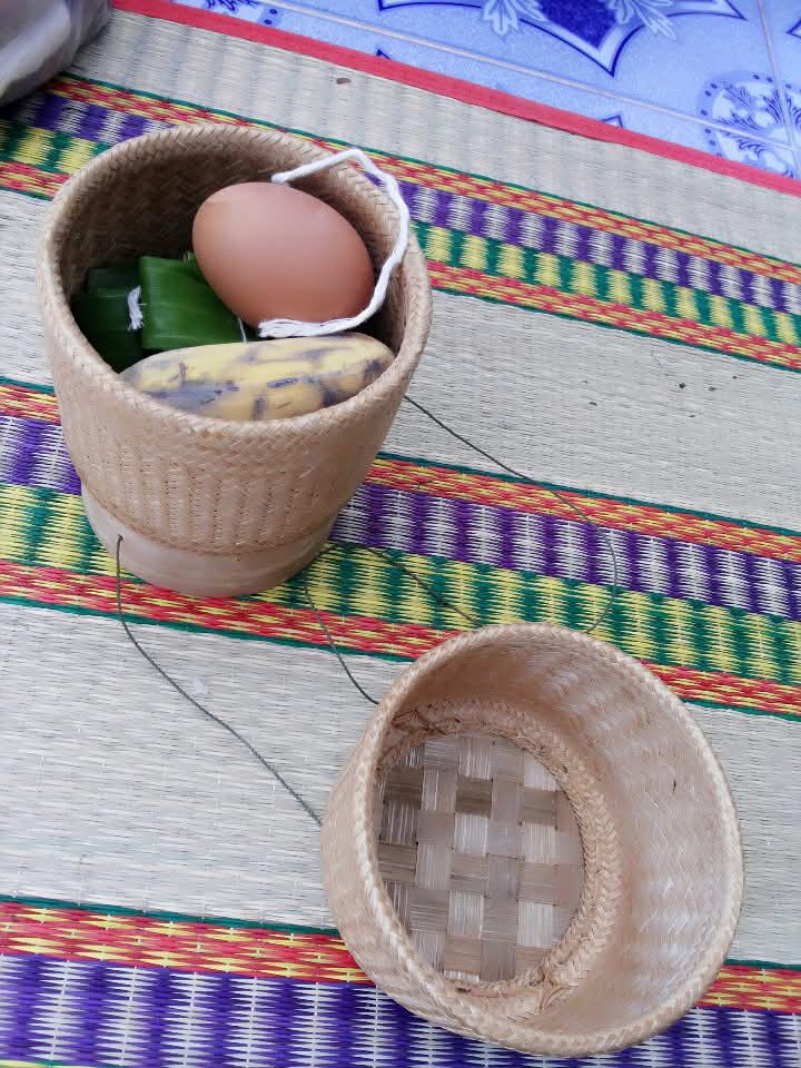 ส่วนนี้ก็มีความจำเป็นการนำกระติบข้าวที่มีการใส่กล้วย ข้าวต้ม ไข่ต้มมาเพื่อที่จะฃองที่จะกลิ้งในสิ่งที่ทุกคนน้้นบอกว่าเขาโดนผีครอบงำ