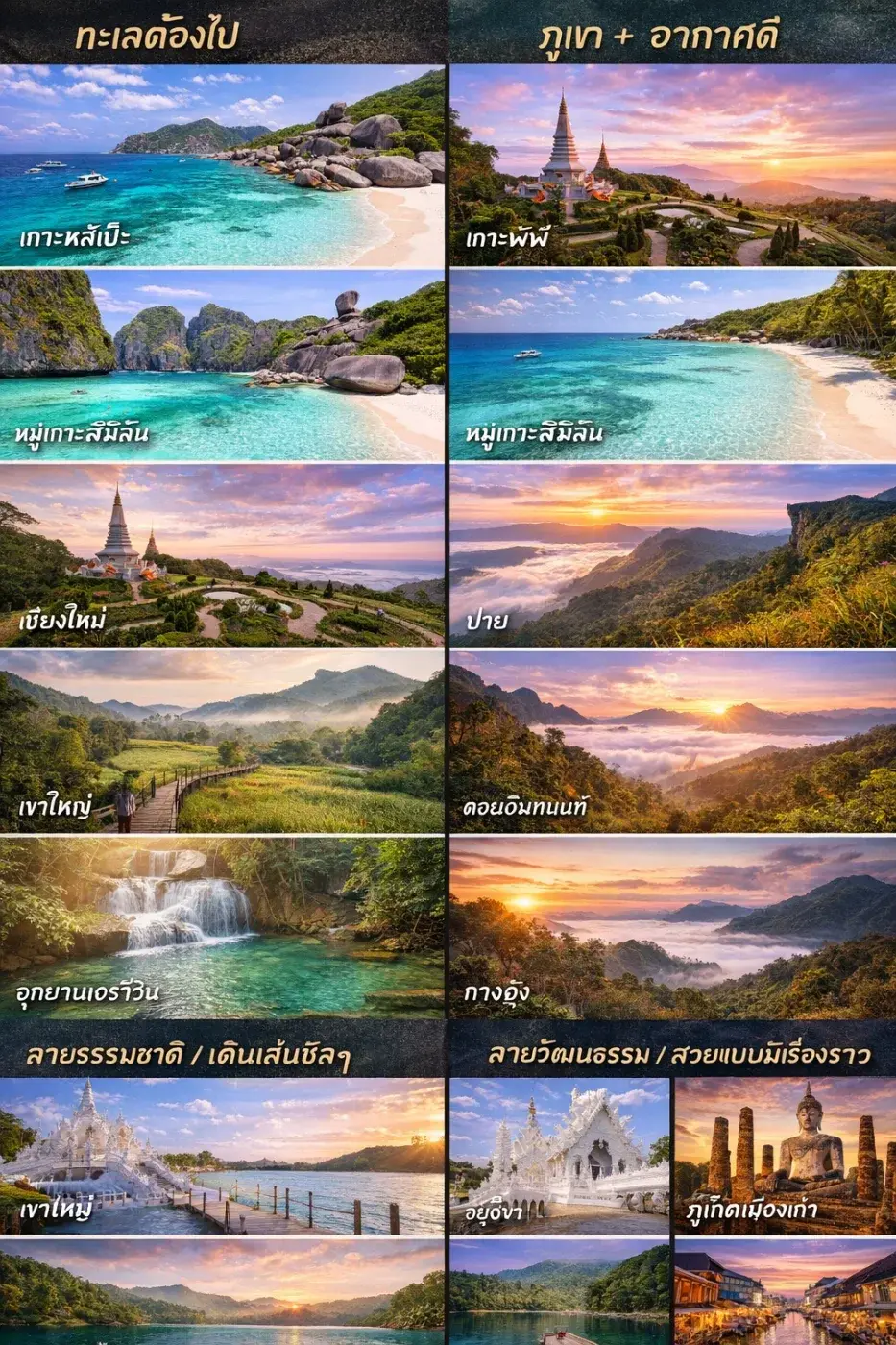 ถ้าคุณกำลังเบื่อชีวิตเดิมๆ อยากเปลี่ยนบรรยากาศแบบไม่ต้องบินไกล ไทยเรานี่แหละคือของจริง! ไม่ว่าจะสายทะเล สายภูเขา สายคาเฟ่ หรือสายเดินชิลๆ ถ่ายรูปลงโซเชียลให้คนถามพิกัด วันนี้เรารวมที่เที่ยวเด็ดๆมาให้แบบ “เลือกไปได้ทั้งปี” เลยนะ!