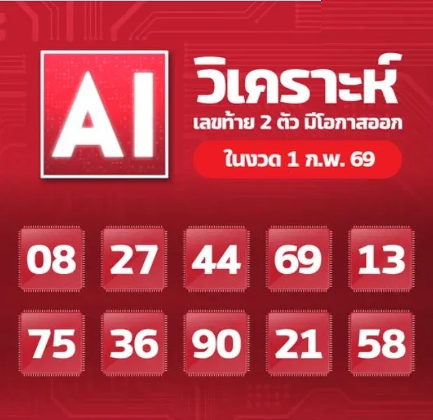 AI วิเคราะห์เลขท้าย 2 ตัว งวดวันที่ 1 กุมภาพันธ์ 69..โดยใช้สถิติย้อนหลัง 20 ปี