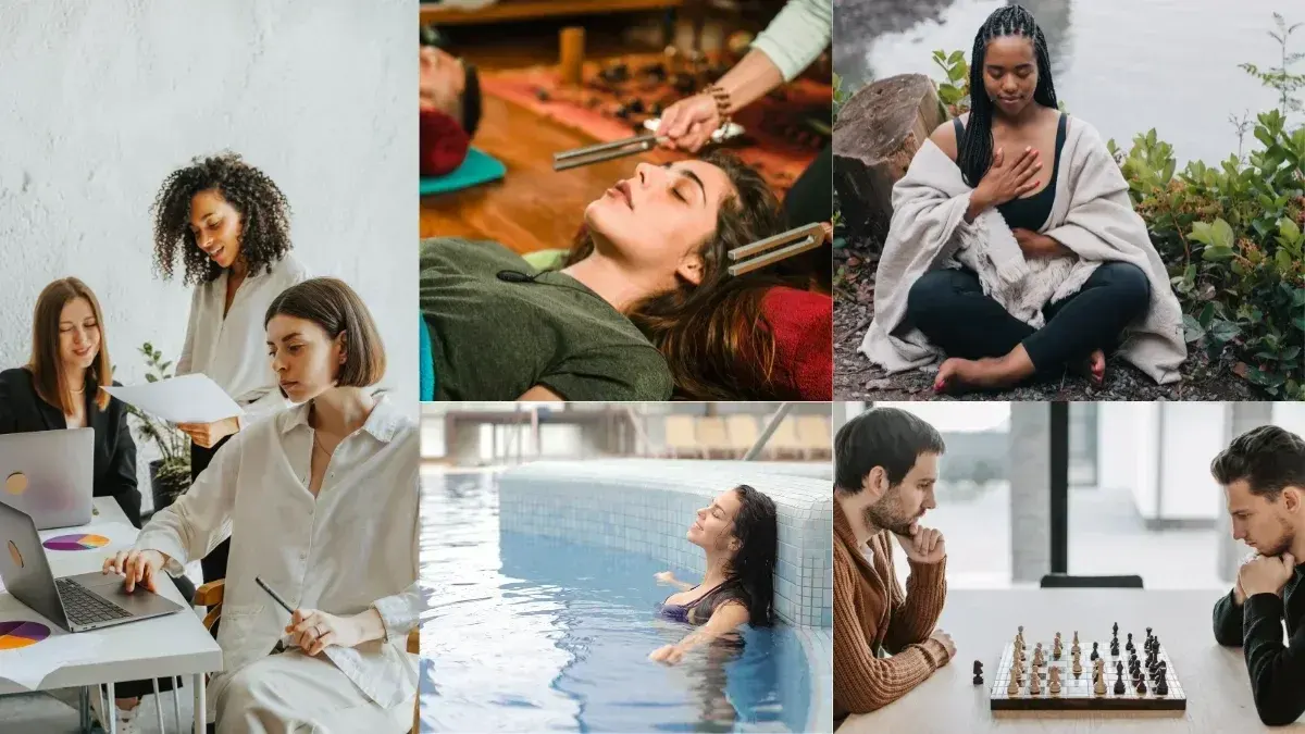 5.ทำกิจกรรมที่ช่วยลดคลายความเครียด การทำงานอดิเรกที่ชอบ เช่น ทำงานฝีมือ งานศิลปะ ฟังดนตรีบำบัด ฝึกสมาธิด้วยการนั่งสมาธิ การฝึกกำหนดลมหายใจ