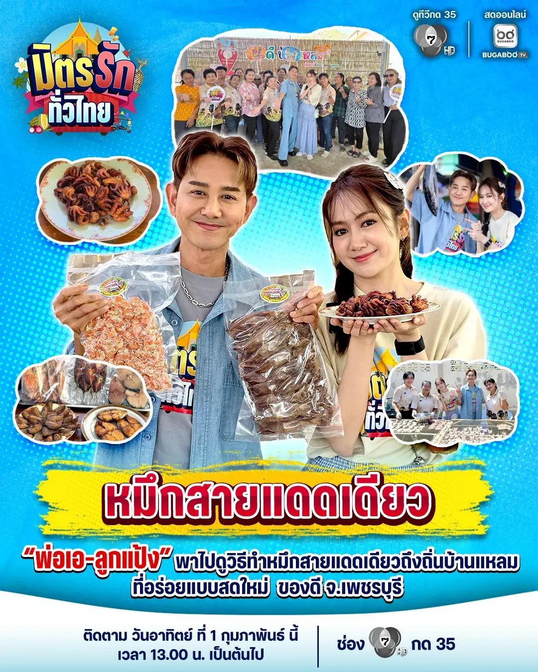 🎥 #มิตรรักทั่วไทย พ่อเอ ลูกแป้ง พาไปดูวิธีทำหมึกสายแดดเดียว ถึงถิ่นบ้านแหลมที่อร่อยแบบสดใหม่ ของดีจาก อ.บ้านแหลม จ.เพชรบุรี