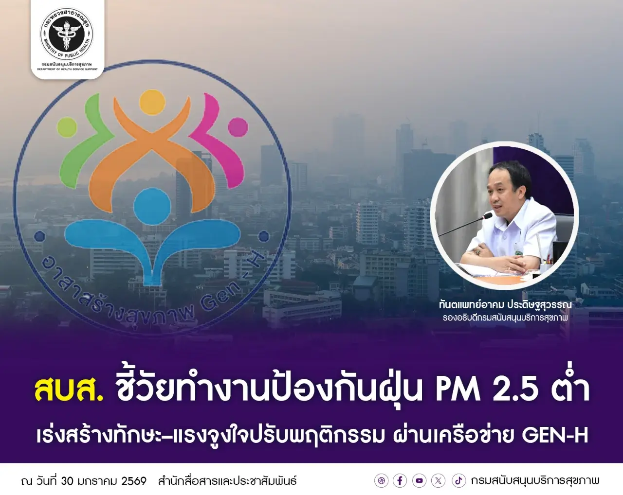 สบส. ชี้วัยทำงานป้องกันฝุ่น PM 2.5 ต่ำ เร่งสร้างทักษะ–แรงจูงใจปรับพฤติกรรม ผ่านเครือข่าย GEN-H