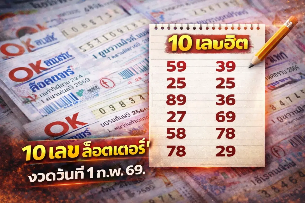 10 เลขฮิต "OK ล็อตเตอรี่" งวดวันที่ 1 กุมภาพันธ์ 69..ส่องก่อน รวยก่อน!!