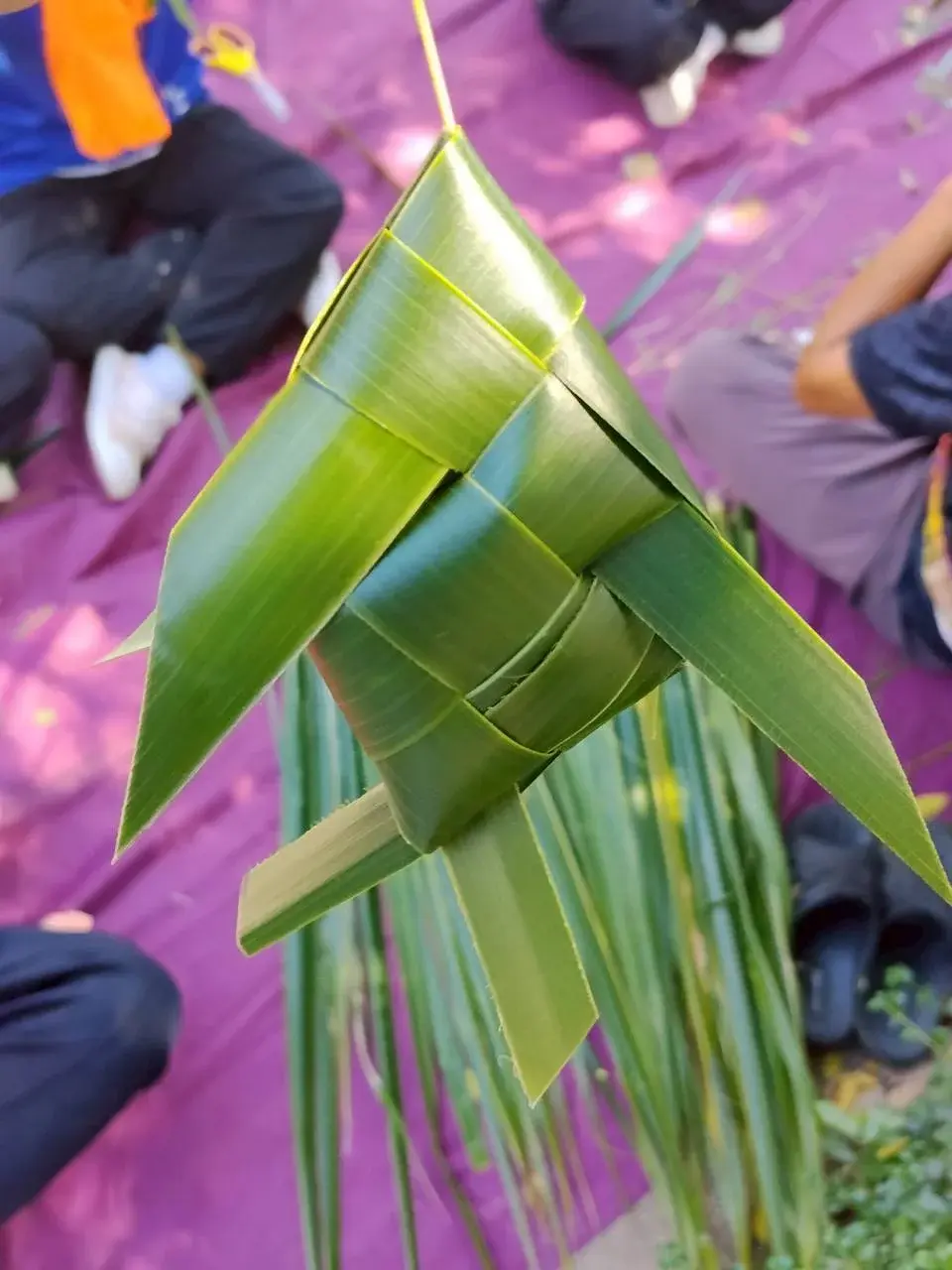 ทางมะพร้าวที่เรานั้นใช้มีเพียงด้วยกันทั้งหมดสองเส้น และยังมีความโยงใยที่สวยงามจากการแบ่ง นำมาวางไว้จากนั้นเราจะไปทำอย่างอื่นเราเองเคยทำทั้งตัวแต่ว่าผ่านไปประมาณเกือบ สิบห้าปี ไม่กล้าที่จะทำเพราะว่าอาจจะเพราะว่าความกลัวเลยทำให้เป็นในแบบนี้ทั้งหมดเลย