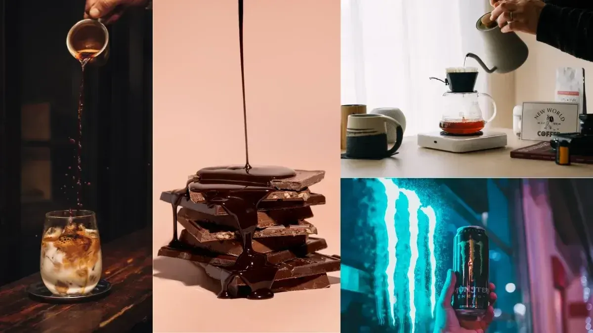 คาเฟอีนพบได้ในเครื่องดื่มประเภท ชา กาแฟ ช็อกโกแลต เครื่องดื่มชูกำลัง