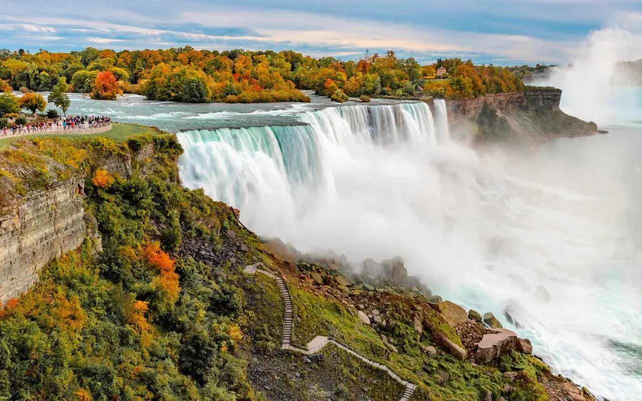 ถ้าพูดถึงน้ำตกที่แค่เอ่ยชื่อขึ้นมา ภาพความยิ่งใหญ่ก็ลอยมาเลยทันที หนึ่งในนั้นต้องมี น้ำตกไนแอการา (Niagara Falls) ติดอันดับแน่นอน น้ำตกแห่งนี้ตั้งอยู่ตรงพรมแดนระหว่าง ประเทศแคนาดา 🇨🇦 กับสหรัฐอเมริกา 🇺🇸 เป็นจุดที่ธรรมชาติสองประเทศมาบรรจบกันแบบอลังการ จนกลายเป็นแลนด์มาร์กระดับโลกที่นักท่องเที่ยวจากทุกมุมโลกใฝ่ฝันอยากมาเห็นด้วยตาตัวเองสักครั้ง