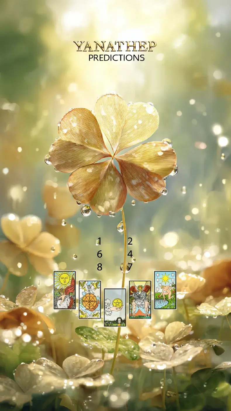 • ใบที่ 2: Wheel of Fortune พลัง: โชคชะตา โอกาส จังหวะชีวิต ดวงกำลังหมุนเข้าข้างคุณ เสริม โชคลาภ / โอกาส / จังหวะดี เรื่องที่รอมานานเริ่มขยับ มีเรื่องฟลุค เรื่องบังเอิญดีๆ นี่คือไพ่ “หัวใจ” ของธีมโคลเวอร์ 4 แฉกเลย