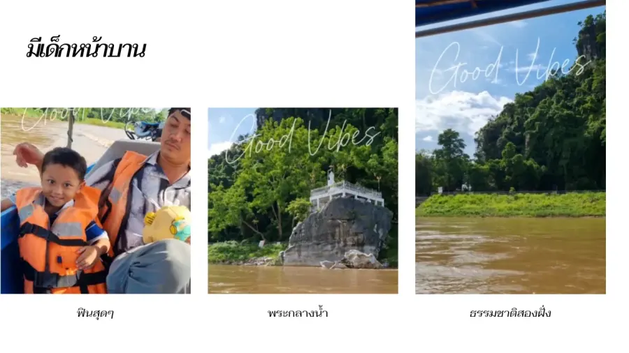 ทันทีที่เครื่องยนต์เรือหางยาวเริ่มคำรามและพุ่งตัวออกไป ความวุ่นวายของเสียงแตรแตรและตึกสูงจะถูกแทนที่ด้วยเสียงลมพัดผ่านกอไผ่และเสียงนกร้อง สายน้ำกกจะพาคุณผ่านโค้งน้ำที่คดเคี้ยวไปตามไหล่เขา ทุกโค้งคือเซอร์ไพรส์ใหม่ ๆ ไม่ว่าจะเป็นถ้ำหินปูน หน้าผาชัน หรือหาดทรายขาวริมแม่น้ำที่ปรากฏขึ้นในช่วงน้ำลด เรียกได้ว่าเปิดโลกใหม่ได้เลย