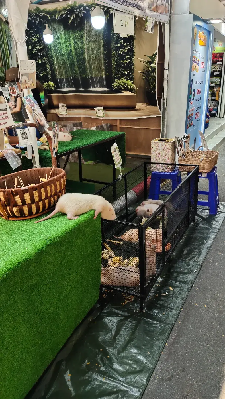 เราอยู่ที่โซน d กันพอสมควรแล้ว ก็มุ่งไปที่โซนถัดไปต่อเลย นั่นคือ โซนจำหน่ายสัตว์เลี้ยง ซึ่งมีสัตว์เลี้ยงน่ารักหลายชนิด ไม่ว่าจะเป็นแมว สุนัข เป็นต้น ในโซนนี้เราได้พบกับเจ้าหนูแสนซนตัวอ้วนเราจึงหยุดดูและถ่ายภาพมันเก็บไว้ 🐈⬛🐾