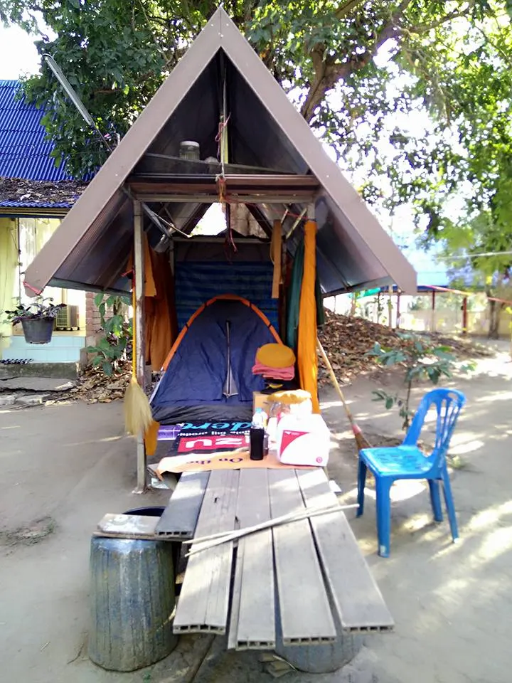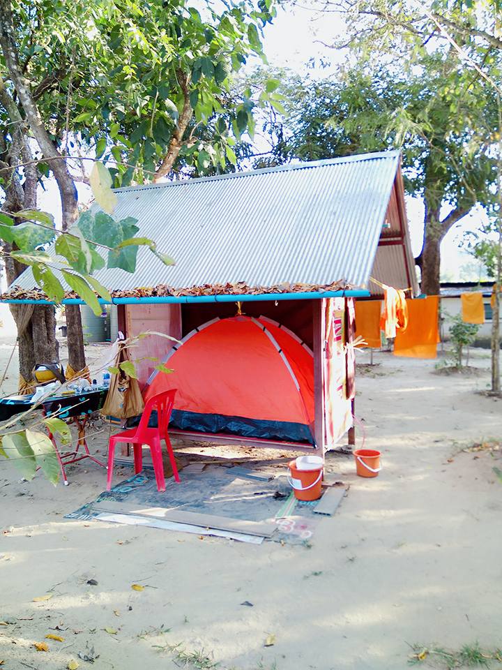 เราอาจจะมองว่าบ้านหลังนี้ถือว่าไม่สื่อสารไม่น่านอน แต่คนเรานั้นต้องมีเพียงที่สำหรับนอน ไม้ที่นำมาเรียงด้านหน้านั้นเหมือนเป็นการสื่อสารให้เข้าใจและเห็นว่า ไม่ว่าเรานั้นจะทำอย่างไร สามารภที่จะเดินได้สบาย ไม่ต้องมีพื้นที่มาก หรือว่าเส้นทางที่หลากหลายเท่าไหร่ จะนำมาซึ่งความงดงาม มีบางแผ่นยางเท่านั้นที่มีการปูเพื่อที่จะสื่อสาร ต่อด้วยการกางเต้นท์ที่ถือว่าไม่หนามาก จากนั้นหน้าที่ต่อมาคือการเตรียมในส่วนของสถานที่ ไม่มีอะไรมีค่าได้เท่าเทียมเรา