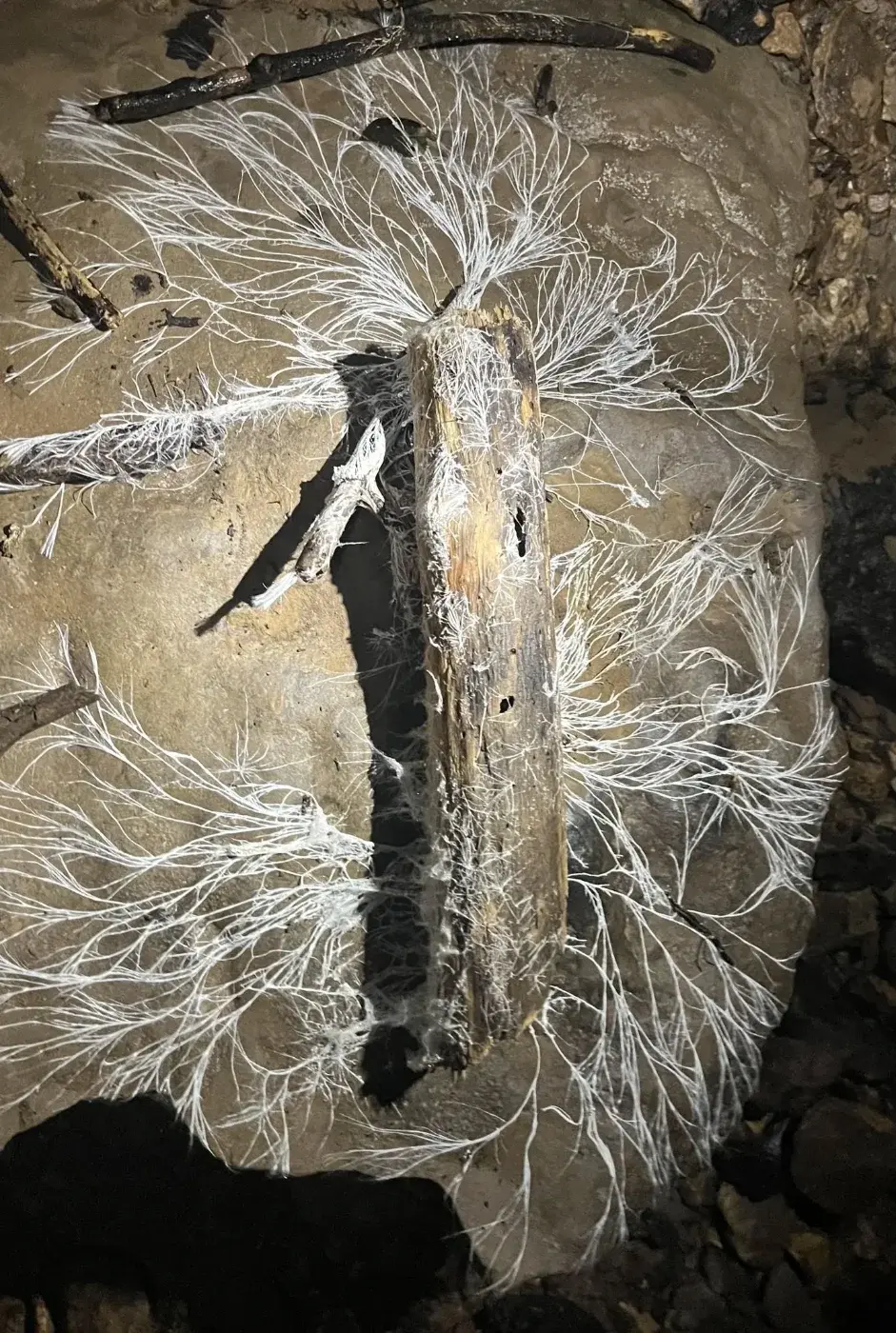 และถ้าแค่นั้นยังไม่พอ ภาพสุดท้ายที่เขาแนบมาด้วย ยิ่งทำให้เรื่องนี้ดูหลอนขึ้นไปอีก เพราะมันคือเชื้อราประหลาดที่เติบโตออกมาจากกิ่งไม้ที่พบในถ้ำเดียวกัน รูปร่างบิดเบี้ยว ดูมีชีวิต และชวนให้ตั้งคำถามว่า ในความมืดลึกใต้โลกแบบนี้ ยังมีอะไรอีกบ้างที่เราไม่รู้จัก