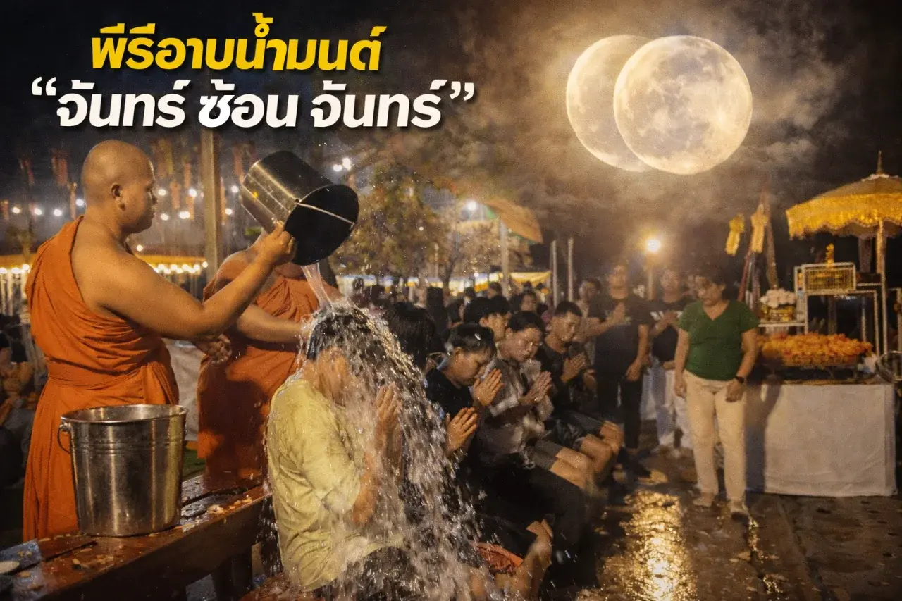 พลังศรัทธาใต้แสงจันทร์: พิธีอาบน้ำมนต์ "จันทร์ซ้อนจันทร์" วัดใหม่กรงทอง คอหวยห้ามพลาดเลขเด็ดอ่างน้ำมนต์
