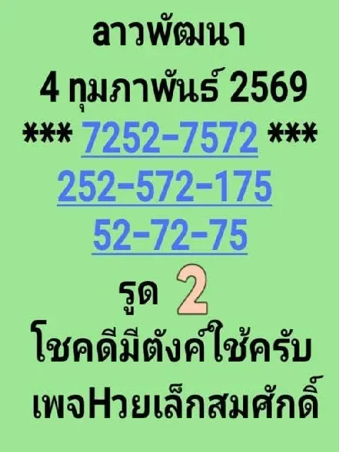 แนวทางหวยลาวพัฒนา งวดวันที่ 4 กุมภาพันธ์ 2569