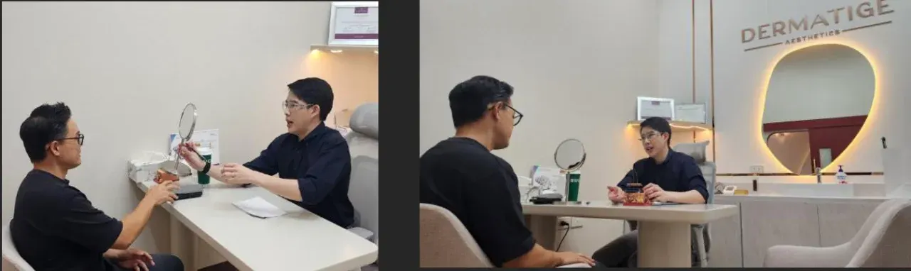 ต้องสารภาพตรงๆ เลยครับว่าในชีวิตเกือบ 50 ปีของผม ไม่เคยคิดเรื่องการเข้าคลินิกทำหน้าเลย มองว่าเป็นเรื่องของผู้หญิงมาตลอด แต่พักหลังมานี้พอมองกระจกแล้วเริ่มรู้สึกว่า "หน้ามันไปไกล" ทั้งริ้วรอยหน้าผากที่เห็นชัดขึ้นมาก แล้วก็แก้มที่เริ่มย้อยจนดูโทรมประกอบด้วย น้องสาวสุดแสบลากให้ไปทำเพราะทนสภาพหน้าพี่ชายที่แสนจะเยินไม่ไหว น้องบอกงานยกกระชับต้องเข้าแล้ว แต่ก็จริงแหละ ภาพสมัยก่อนกับปัจจุบันช่างแตกต่าง 5555+ สุดท้ายเลยตัดสินใจลองมาปรึกษาที่ Dermatige สาขา Central Bangna ดูครับ สาขานี้ใกล้บ้าน และเหมือนมีโปรฯ ดีเพราะเปิดสาขาใหม่