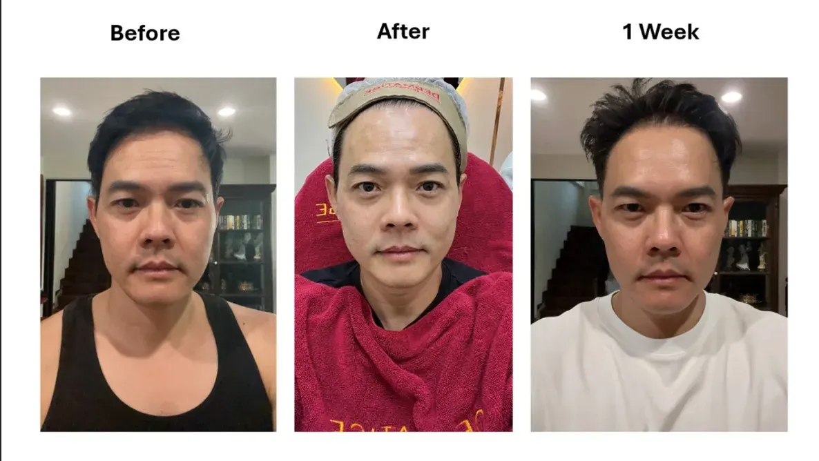 ผลลัพธ์หลังทำทันที คุณหมอเค้าจะทำทีละข้าง ที่ทึ่งที่สุดคือพอทำเสร็จปุ๊บ ผมลองส่องกระจกดู คือมันเห็นความต่างทันทีครับ หน้าดูเรียวขึ้นเป็นตัว V เลย รอยเหนียงรอยย้อยที่เคยกังวลมันดูตึงขึ้นชัดเจนมาก ไม่คิดว่าเทคโนโลยีสมัยนี้มันจะเห็นผลเร็วขนาดนี้ แต่คุณหมอก็บอกแหละว่า ทำ Ulthera กับ Ultraformer MPT มันเป็นความร้อน คือทำแล้วยังไงก็เห็นความต่าง แต่มันจะเห็นผลชัดมากๆตั้งแต่ อาทิตย์ที่ 2 จนถึง 1 เดือน มันจะไม่ได้รวดเร็วแบบที่ผมคิด