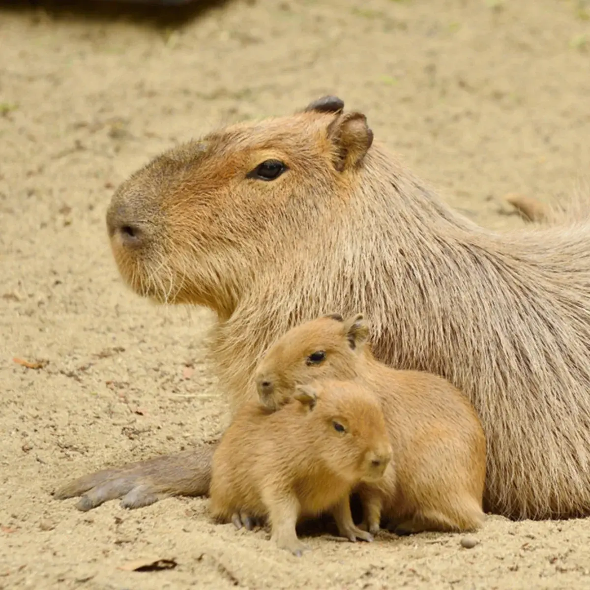 ในฝูงคาปิบารา การเลี้ยงลูกไม่ใช่หน้าที่ของแม่เพียงตัวเดียว ตัวเมียในฝูงจะช่วยกันดูแลลูกๆ ทั้งหมด ลูกคาปิบาราตัวหนึ่งอาจเดินไปขอกินนมจากแม่ตัวอื่นในฝูงได้แบบชิลๆ เป็นระบบสังคมที่อบอุ่นและน่ารักมาก