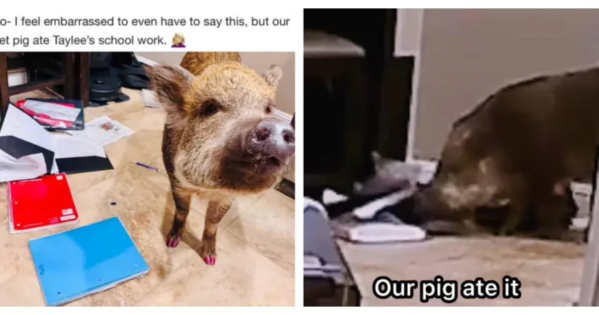 เมื่อเร็วๆ นี้ เทย์ลี นักเรียนหญิงคนหนึ่งในรัฐแอริโซนา สหรัฐอเมริกา ได้ส่งวิดีโอจากกล้องวงจรปิดให้โรงเรียนเป็น "หลักฐาน" ว่าทำไมเธอไม่ได้ส่งการบ้าน วิดีโอแสดงให้เห็นหมูแคระตัวโปรดของเธอชื่อพอลลี่ กำลังเปิดกระเป๋าเรียนของเธออย่างใจเย็น แล้วฉีกกระดาษการบ้านเป็นชิ้นๆ และกลืนลงไป ซึ่งกลายเป็นประเด็นร้อนในโลกออนไลน์อย่างไม่คาดคิด
