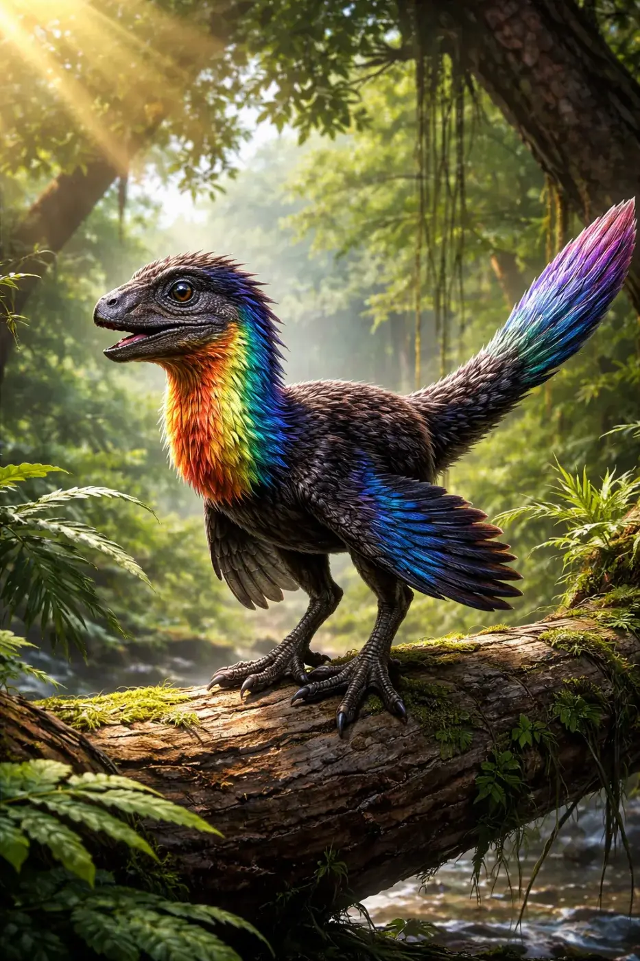 ลองจินตนาการดูนะ ไดโนเสาร์ยุคจูราสสิกตัวเล็ก ๆ ยืนอยู่กลางแสงแดด แล้วขนตรงคอเป็นประกายเหลือบสีรุ้ง วิบวับไปมา… มันไม่ใช่ภาพไดโนเสาร์ดุดันแบบในหนังเลยสักนิด แต่กลับดูคล้ายญาตินกมากกว่า