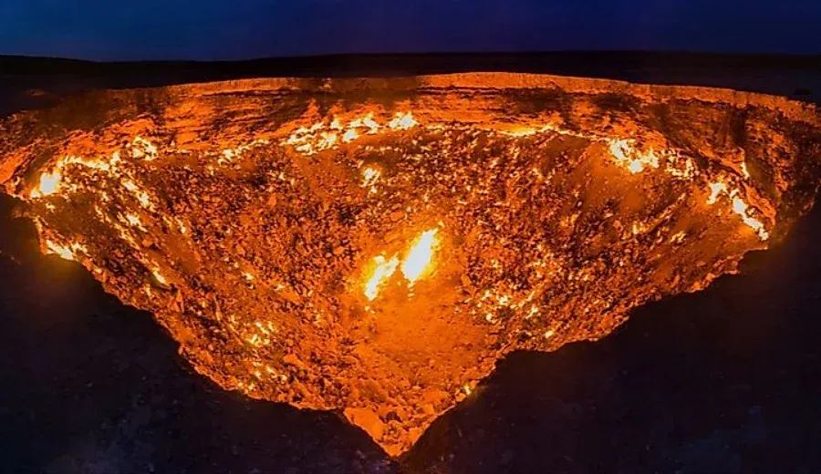 ทำไมถึงแปลก: เป็นหลุมก๊าซธรรมชาติที่ยุบตัวลงในปี 1971 นักธรณีวิทยาตัดสินใจจุดไฟเผาเพื่อป้องกันการแพร่กระจายของก๊าซพิษ โดยหวังว่ามันจะดับในไม่กี่วัน... แต่ผ่านมา 50 กว่าปีแล้ว ไฟนี้ก็ยังไม่เคยดับลงเลย นรกชัดๆ