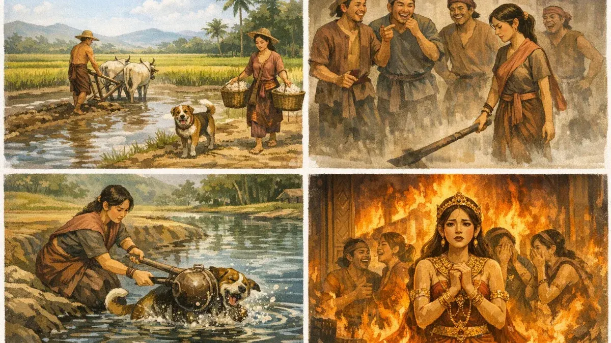 โศกนาฏกรรมแห่งความรักที่บิดเบี้ยวและการจองเวรข้ามภพชาติ เมื่อความซื่อสัตย์ของสัตว์เดรัจฉานกลับกลายเป็นความอับอายของมนุษย์ นำไปสู่การตัดสินใจที่ผิดพลาดซึ่งส่งผลกระทบยาวนานกว่าที่ใครจะคาดคิด เรื่องราวจากอรรถกถาธรรมบทนี้เป็นบทเรียนสำคัญที่ย้ำเตือนให้เห็นถึงอานุภาพของ "เจตนา" และกงเกวียนกำเกวียนที่ไม่มีใครหลีกพ้น