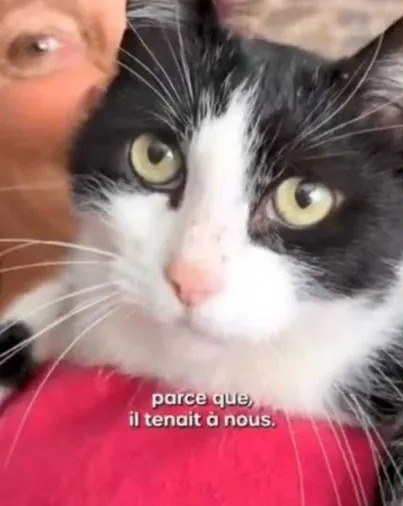 สี่เดือนต่อมา ชาวบ้านคนหนึ่งที่อาศัยอยู่ใกล้เมืองโอโลนซัค ประเทศฝรั่งเศส พบแมวสีดำขาวผอมโซและอ่อนแอตัวหนึ่งอยู่หน้าบ้าน เขาจึงรับมันกลับบ้านไปดูแลอย่างใจดี และส่งไปให้สัตวแพทย์ตรวจสุขภาพ หลังจากที่ระบุตัวตนของแมวได้ด้วยการสแกนไมโครชิปแล้ว การเดินทาง "กลับบ้าน" ระยะทาง 250 กิโลเมตรจึงเริ่มต้นขึ้นในที่สุด
