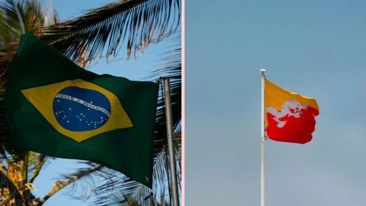 ภูฏาน: โดดเด่นด้วย "มังกรสายฟ้า" หรือดรัก บนพื้นสีเหลืองและส้ม สะท้อนถึงอำนาจทางโลกของกษัตริย์และหลักธรรมแห่งพุทธศาสนา