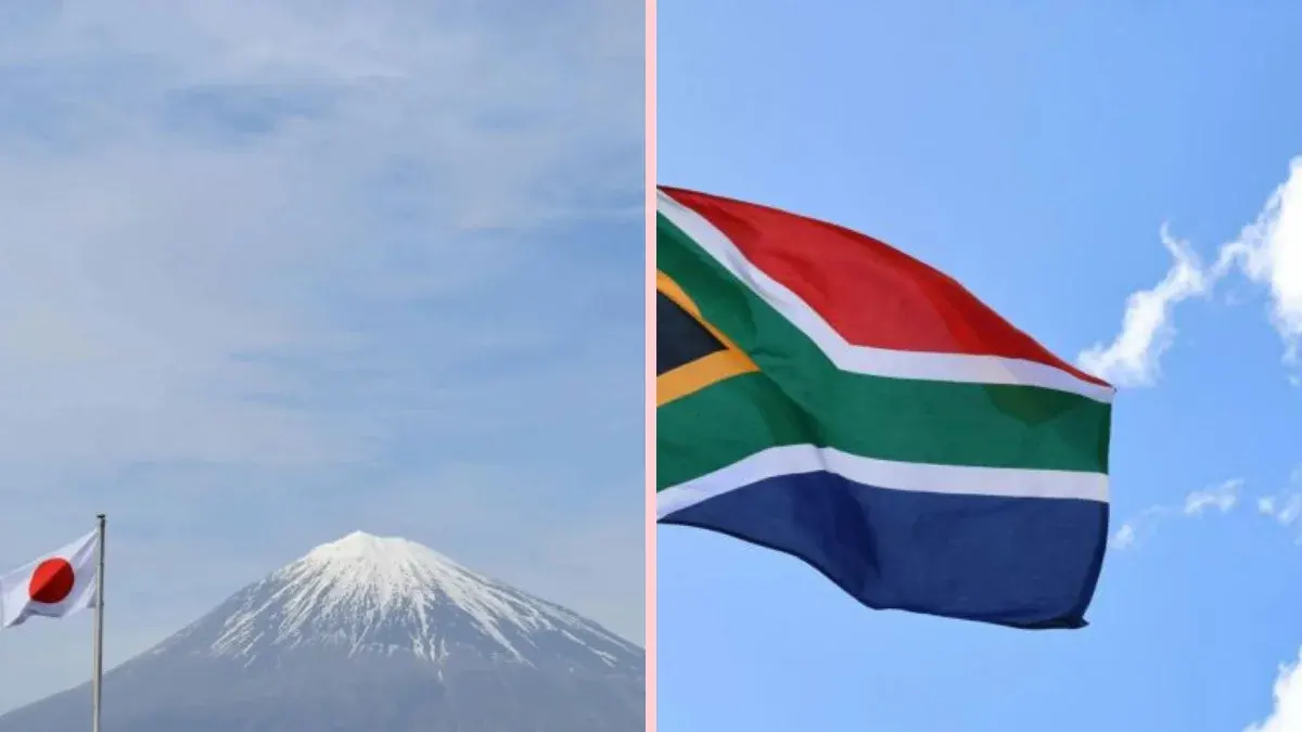 แอฟริกาใต้: ธงทรงตัว Y ที่หลอมรวม 6 สีเข้าด้วยกัน เพื่อเป็นสัญลักษณ์ของการเริ่มต้นใหม่และความสามัคคีของคนหลากสีผิวหลังยุคแบ่งแยกสีผิว