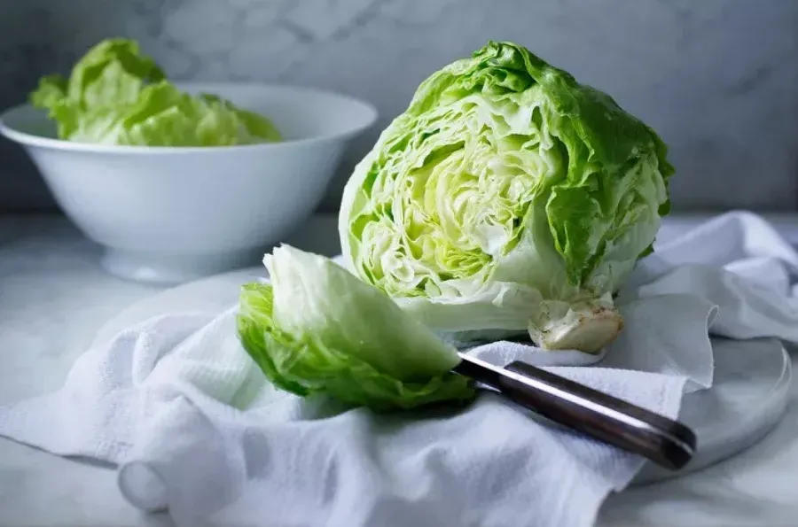 5. ผักกาดแก้ว (Iceberg Lettuce) - ทางเลือกเพื่อความสดชื่น แม้สารอาหารจะน้อยกว่า 4 ชนิดข้างต้น แต่ก็ยังมีประโยชน์แฝงอยู่มีปริมาณน้ำสูงมาก (ช่วยดับร้อน) และมีสาร Lactucarium ที่ช่วยให้รู้สึกผ่อนคลายและหลับสบายขึ้นเล็กน้อย เหมาะสำหรับเพิ่มเนื้อสัมผัสความกรอบให้กับสลัด และช่วยให้รู้สึกอิ่มเร็วขึ้น