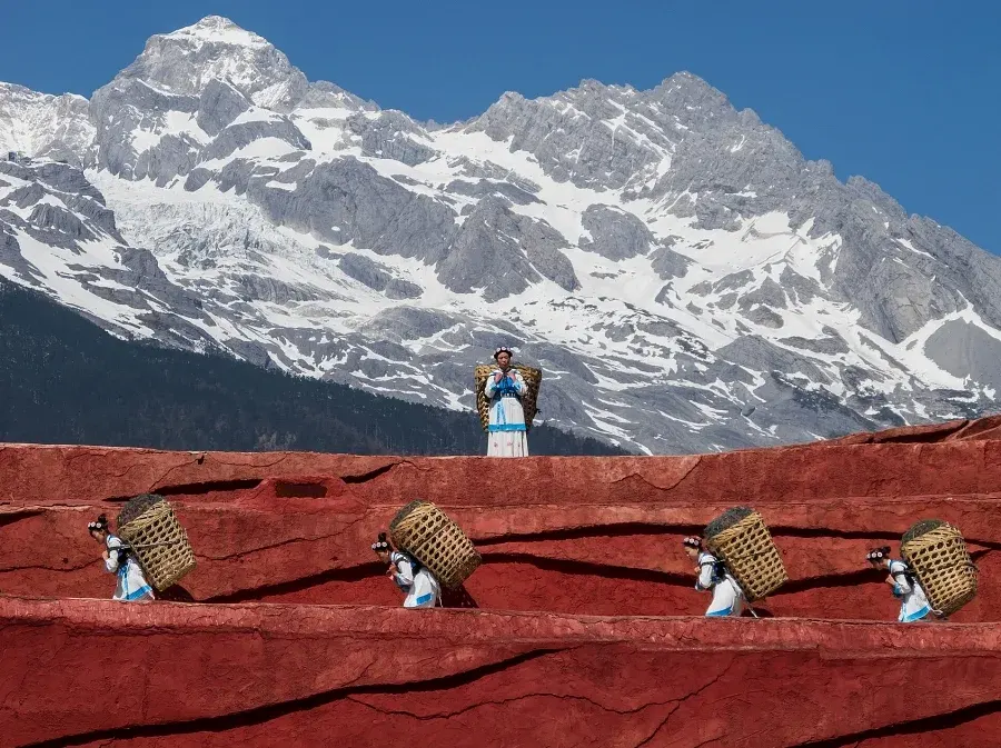 -จุดเด่น: เทือกเขาหินปูนขนาดใหญ่ในเมืองลี่เจียงที่ยอดเขาปกคลุมด้วยหิมะขาวโพลน ดูคล้ายมังกรหยกที่นอนพาดตัวอยู่เหนือเมฆ