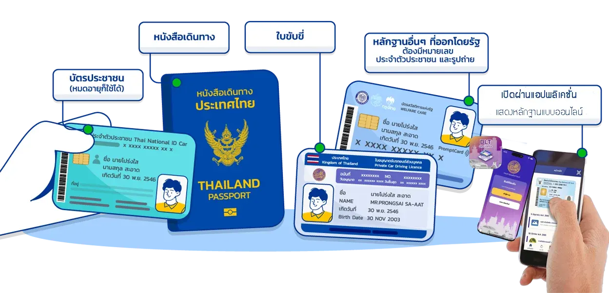 - บัตรประชาชน (หรือบัตรที่รัฐออกให้): ตัวตึงที่ขาดไม่ได้! จะบัตรประชาชนตัวจริง (หมดอายุก็ใช้ได้นะ!) หรือเปิดผ่านแอปฯ ThaID ก็สะดวกสุดๆ หรือจะเป็นใบขับขี่ พาสปอร์ต ที่มีเลขบัตร 13 หลักและรูปถ่ายชัดเจน ก็ใช้ยืนยันตัวตนได้เลยครับ