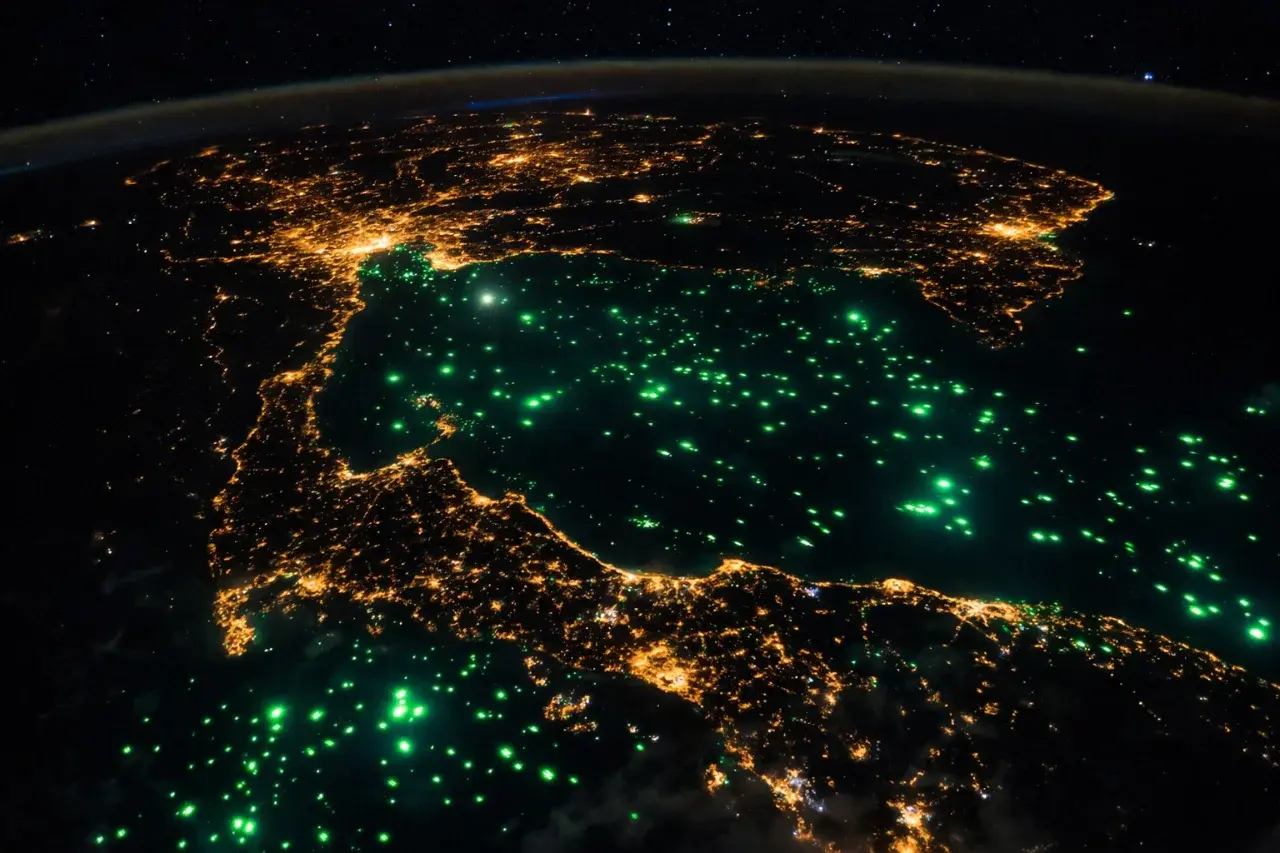 แต่สิ่งที่หลายคนสะดุดตาที่สุดกลับเป็น “แสงสีเขียว” ที่กระจายเป็นจุดๆ เต็มอ่าวไทยและทะเลอันดามัน หลายคนอาจคิดว่าเป็นปรากฏการณ์ธรรมชาติหรือสิ่งลึกลับ แต่ความจริงแล้วมันคือเรือประมงที่ใช้ไฟล่อหมึกและปลากลางคืน แสงเหล่านี้สว่างมากจนมองเห็นได้จากอวกาศ และมีเอกลักษณ์จนเหล่านักบินอวกาศชอบถ่ายภาพไว้ เพราะมันดูเหมือนดวงดาวที่ลอยอยู่บนผืนน้ำทะเล