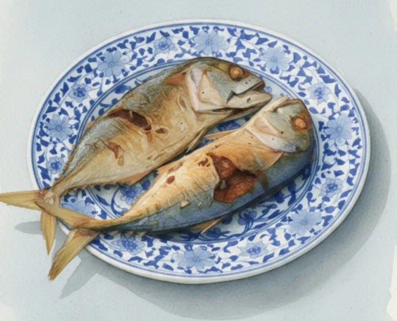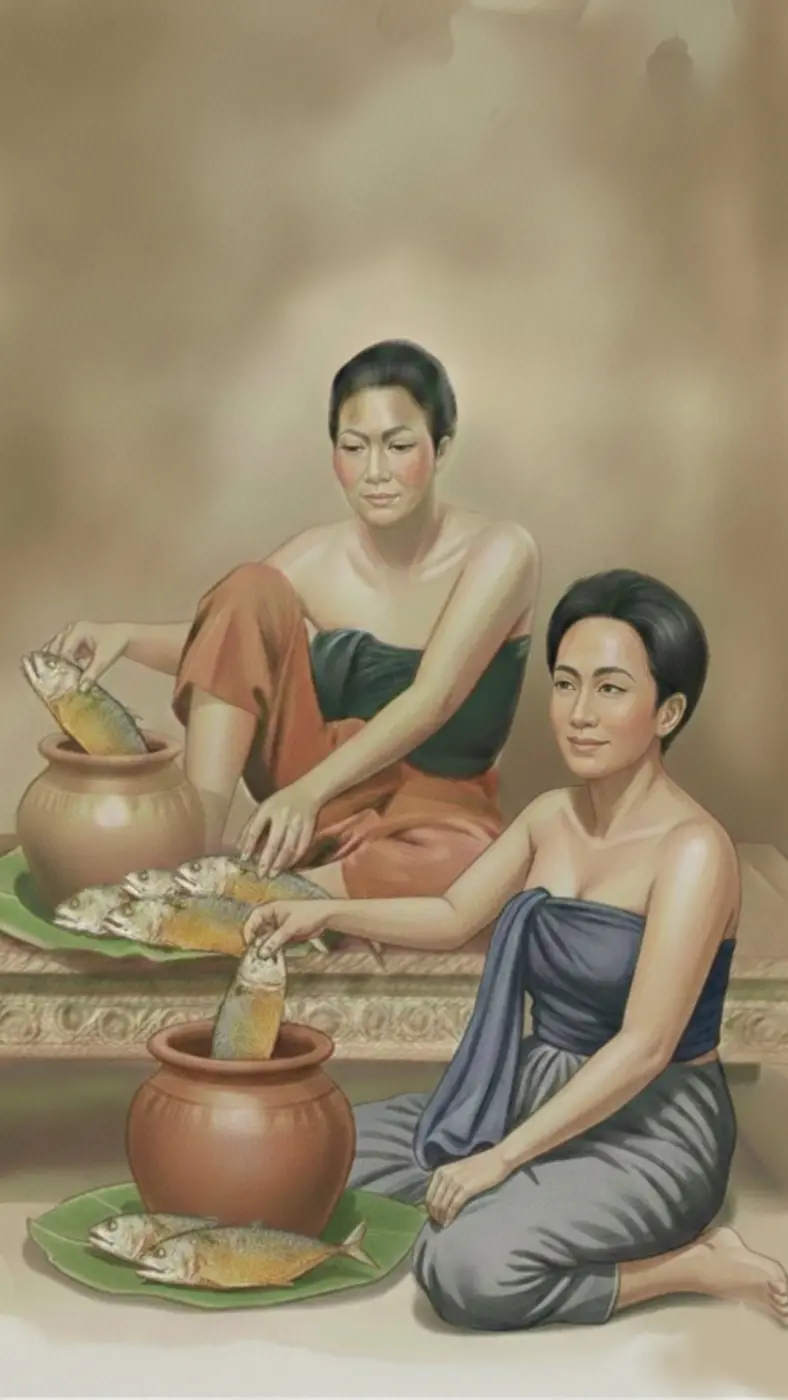 เวลาจะเสวย หยิบปลามาทอดใหม่อีกที เป็นวิธีเก็บปลาทูไว้กินตลอดปี ต้องเก็บได้วิธีนี้วิธีเดียวคือทอดให้สุก แล้วเอามาแช่ในน้ำมันหมู เวลาจะกินควักเอามาทอดอีกทีสมัยก่อนพอหมดหน้าปลาทูแล้ว ก็หมดกัน ไม่มีจะกินเลย จนกว่าจะถึงฤดูกาลมีมาใหม่ แต่สมัยนี้คงไม่ต้องทำวิธีนี้ เพราะเห็นปลาทูนึ่งมีขายทั้งปี มีกินตลอดไป