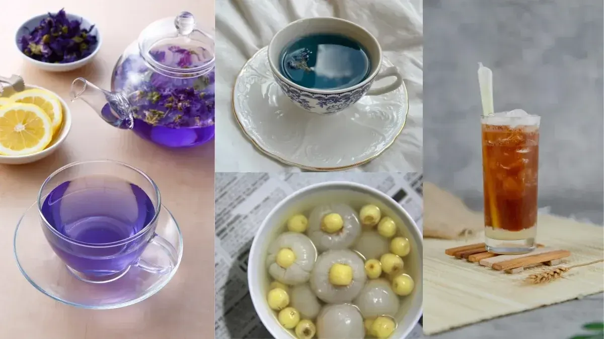 7.น้ำอัญชัน ในดอกอัญชันจะมีสารแอนโทไซยานิน มีฤทธิ์กระตุ้นความจำ ช่วยผ่อนคลายความเครียด ลดความกังวล และ ช่วยให้นอนหลับดีขึ้น