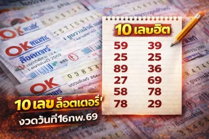 10 เลขฮิต "OK ล็อตเตอรี่" งวดวันที่ 16 กุมภาพันธ์ 69..ส่องก่อน รวยก่อน!!
