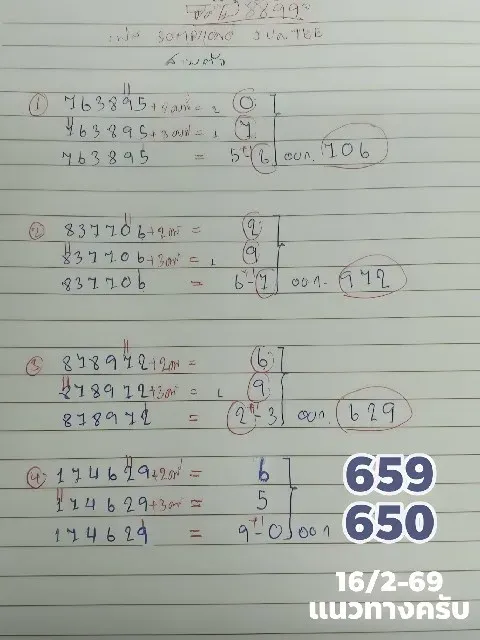 รวม เลขปฏิทินจีน งวด 16/2/69
