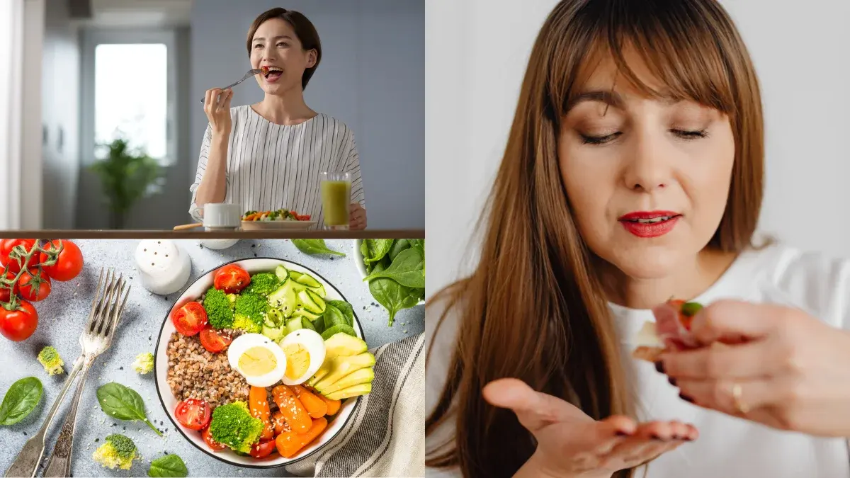 4.เคี้ยวอาหารให้ละเอียด 10-15 ครั้งต่อคำ การเคี้ยวอาหารนาน ๆ จะทำให้กินอาหารได้น้อยลง คนเราทั่วไปจะเริ่มอิ่มหลังจากกินไปแล้ว 10-15 นาที ดังนั้นถ้ารีบเคี้ยว รีบกินอาหารให้เสร็จภายใน 5 นาทีแรก จึงยังรู้สึกไม่อิ่ม ทำให้บริโภคอาหารเยอะกว่าปกติ