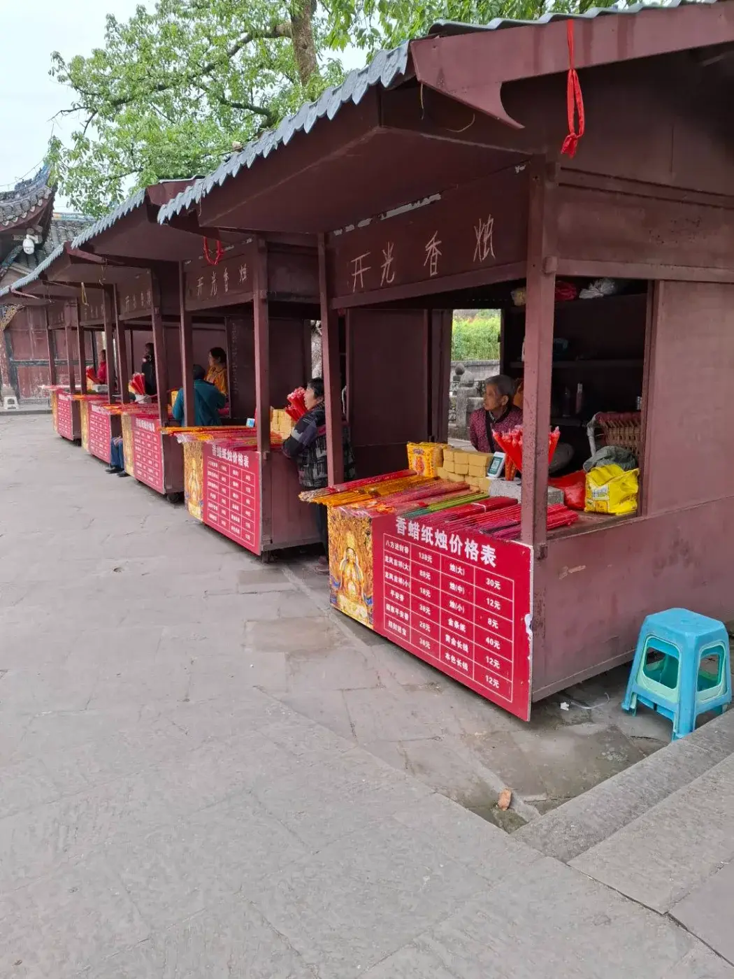 หลังจากไหว้พระแล้ว เราก็เดินไปรับประทานอาหารก่อนเดินทางกลับสู่นครฉงชิ่ง ซึ่งใช้เวลาประมาณ 2 ชั่วโมง เราต้องเดินไกลพอสมควรที่จะไปยังร้านอาหาร ระหว่างทางจะมีร้านขายสินค้าต่างๆ ตามรายทาง ทั้งสินค้าที่เป็นของที่ระลึกเล็กๆ จนถึงสินค้าขนาดใหญ่ หินขนาดใหญ่ และไม้แกะสลัก