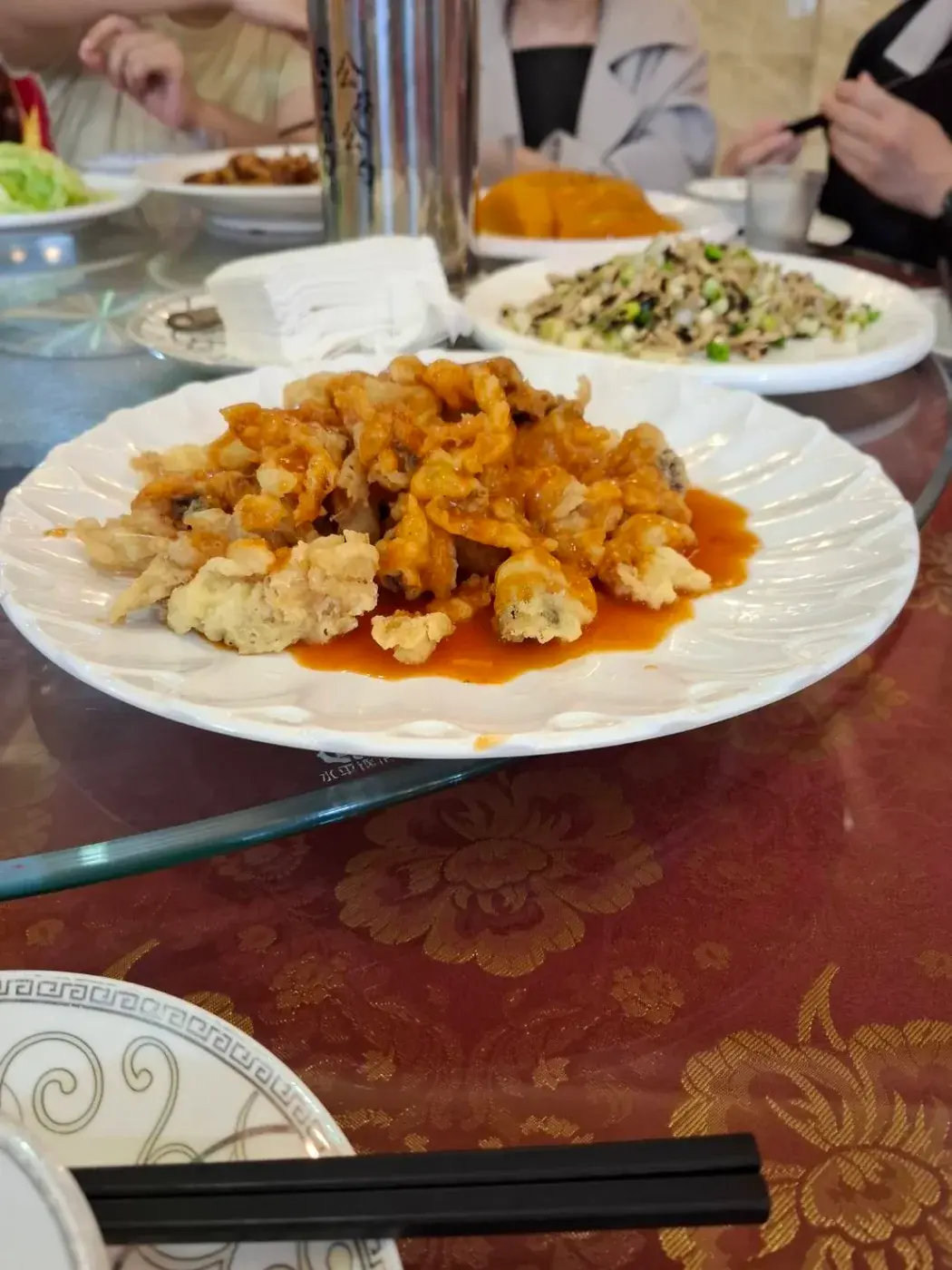 ร้านอาหารที่นี่ก็อร่อยนะ และที่หน้าร้านก็มีร้านขายผลไม้อยู่หลายร้านแต่เป็นผลไม้ข้างทาง ขอบอกเลยว่า สดและอร่อยมาก ผู้ร่วมทัวร์คนหนึ่งซื้อลูกท้อสดมาลองชิม และแบ่งให้เพื่อนๆ ด้วย เออนะ มันอร่อยจริงๆ