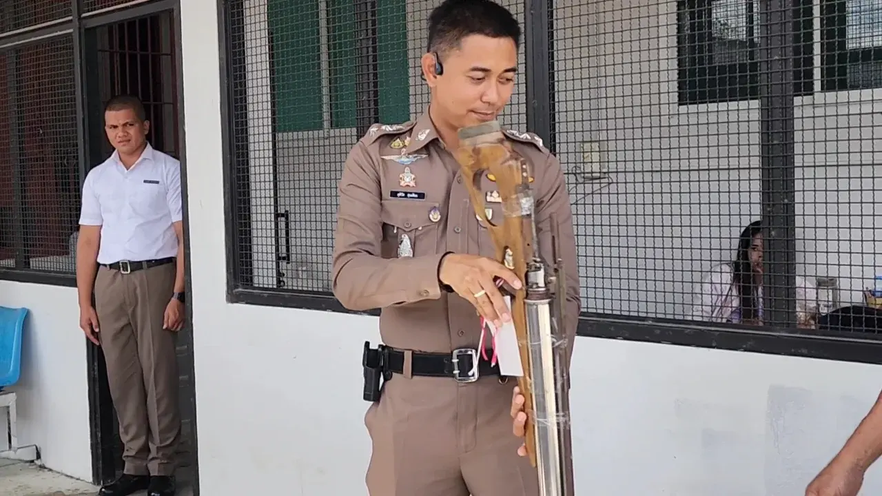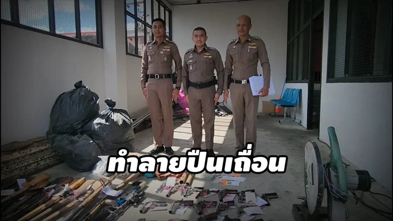 ผกก.สภ.เมืองกระบี่ นำทีมทำลายปืนเถื่อนหลังศาลสั่งคดีถึงที่สุด
