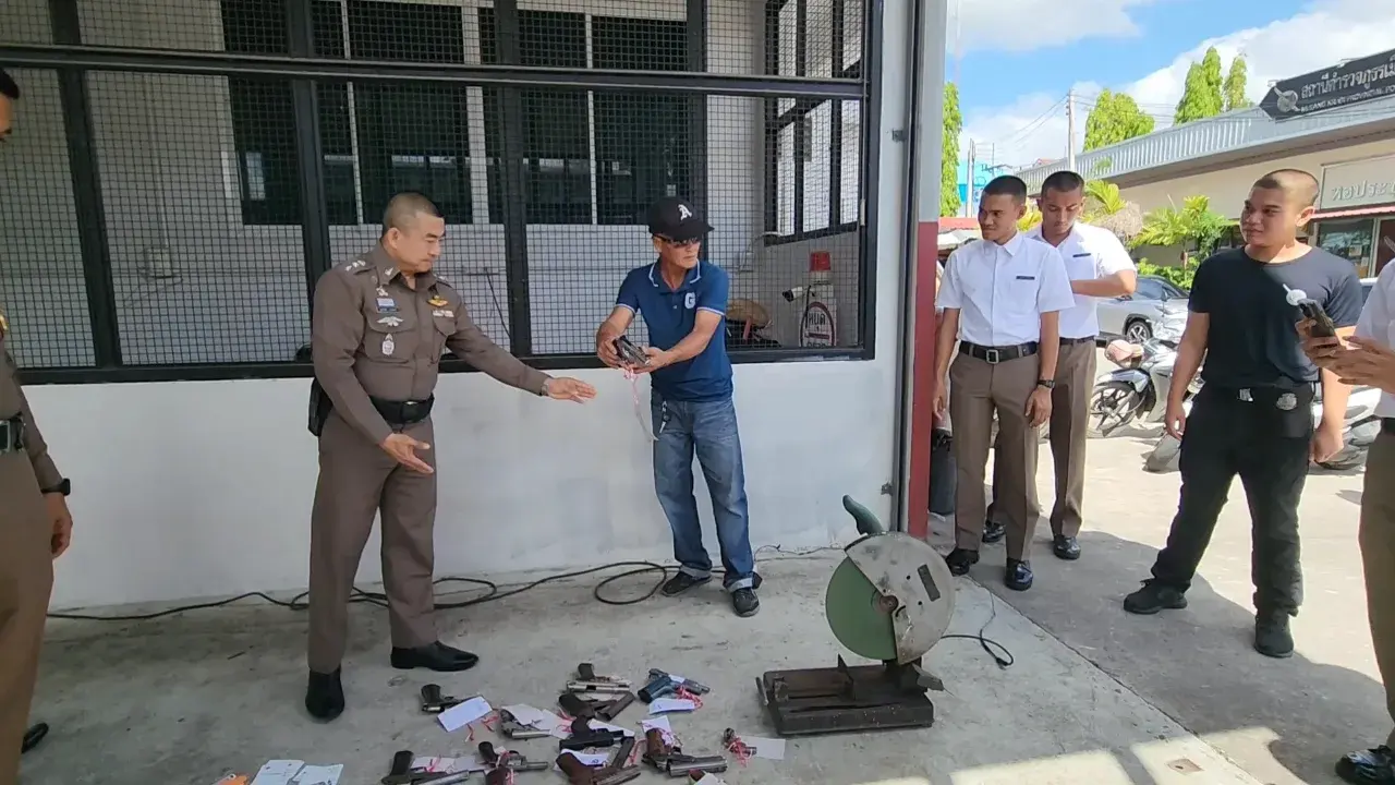 เหตุการณ์เปิดเผยขึ้นเมื่อวันที่ (13 กพ.69) ที่ สถานีตำรวจภูธรเมืองกระบี่ พ.ต.อ.สุทธิภัค คมสาคร ผู้กำกับการ สภ.เมืองกระบี่ นำกำลังเจ้าหน้าที่พร้อม พ.ต.ท.สุทิวัส อุ่นเสียม รองผู้กำกับการป้องกันและปราบปราม ร่วมกันทำลายอาวุธปืนและสิ่งเทียมอาวุธปืนผิดกฎหมาย รวมจำนวน 35 กระบอก ภายหลังคดีสิ้นสุดและมีคำพิพากษาของศาลถึงที่สุดแล้ว