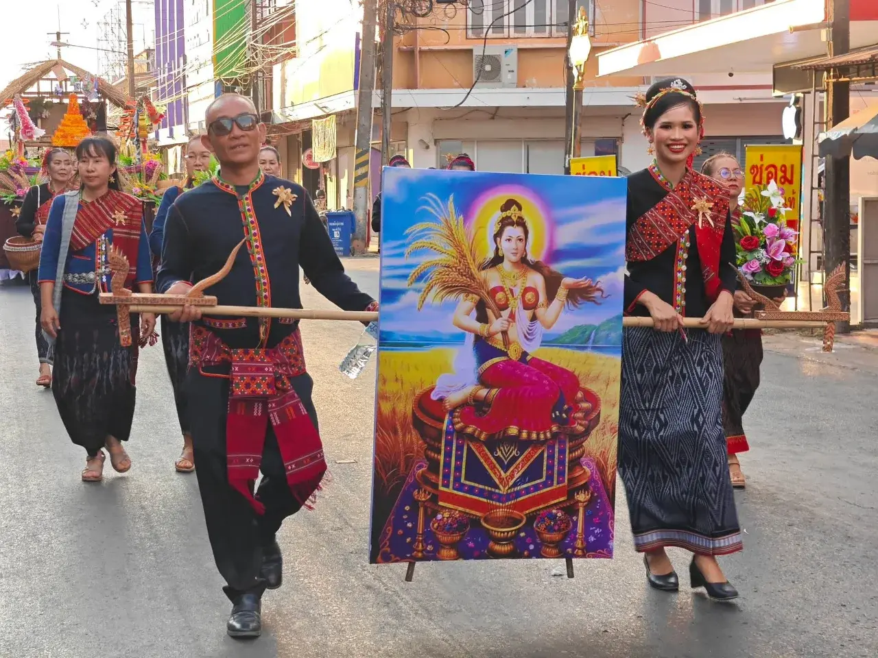 การเดินขบวนนั้นมำให้เรานั้นได้เห็นในส่วนของวัฒนธรรมที่หลากหลาย อย่างการเดินบุญต่างๆ บุญคูณลาน บุญหุ้มข้าวใหญ่ที่ทำเหมือนกันแต่เรียกต่างกันในแต่ละพื้นที่ แต่คือแบบเดียวกัน การนำรวงข้าวนั้นมารวมกันสร้างเป็นเหมือนบ้านให้แม่โพสพ จากนั้นจะนำข้าวเข้าไปกองอย่างสวยงาม ด้านใน ทำให้เป็นการบูชาและสมโภชอาจะสองสามวันหรือมากกว่านั้นได้