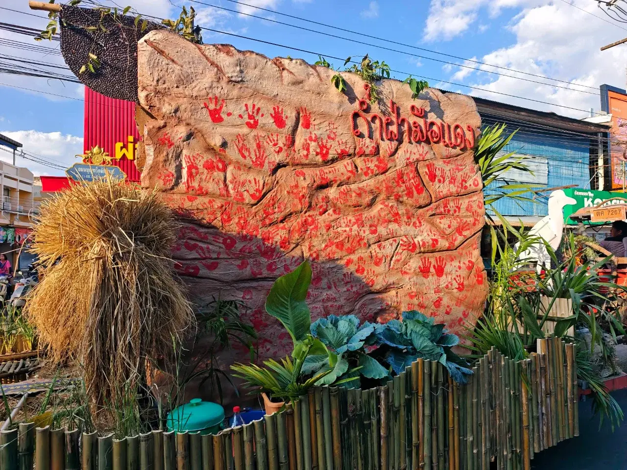ฝามือแดงอายุมากกว่าพันปี "บนยอดภูผาผึ้ง"ฝามือขนาดใหญ่มหึมาสื่อถึงเรื่องราวว่าคนสมัยก่อนตัวใหญ่ขนาดใด