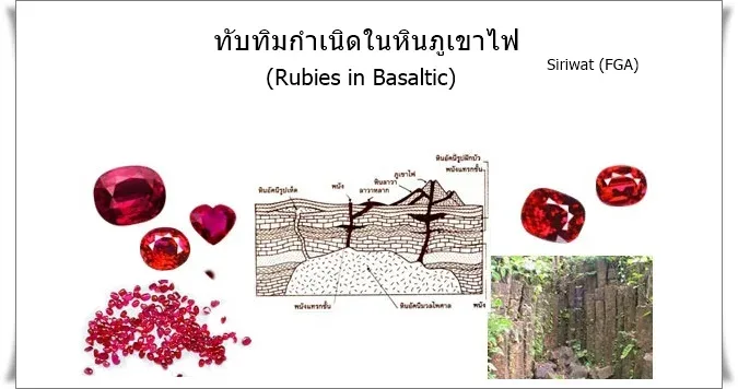 ผลพลอยได้จากภูเขาไฟ เมื่อลาวาไหลขึ้นมาเหนือผิวโลก มันได้พามวลแร่ธาตุต่างๆ ใต้ดินขึ้นมาด้วย เมื่อลาวาเย็นตัวลงและผ่านกระบวนการทางธรณีวิทยานับล้านปี แร่เหล่านั้นก็กลายเป็น ทับทิม และ ไพลิน อย่างที่เราพบใน จ.จันทบุรี, ตราด และกาญจนบุรีนั่นเอง