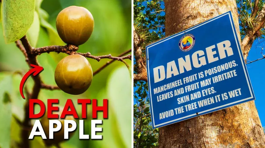 ดูภายนอกเหมือนต้นไม้ริมทะเลทั่วไป ผลของมันดูคล้ายแอปเปิ้ลเขียวตัวเล็กๆ แต่ฉายาของมันคือ "แอปเปิ้ลแห่งความตาย" ความแปลกคือทุกส่วนของต้นนี้เป็นพิษร้ายแรง แค่ไปยืนหลบฝนใต้ต้น ยางที่ผสมกับน้ำฝนหยดใส่ผิวก็ทำให้ผิวไหม้พองได้ และถ้ากินผลของมันเข้าไปอาจถึงแก่ชีวิต พบได้แถบชายฝั่งทะเลแคริบเบียน อเมริกากลาง และฟลอริดา