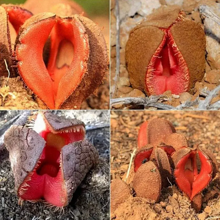ต้นไม้ต้นนี้ดูเหมือนหลุดมาจากหนังเขย่าขวัญ มันไม่มีใบ ไม่มีคลอโรฟิลล์สำหรับสังเคราะห์แสง และใช้ชีวิตเกือบทั้งหมดอยู่ "ใต้ดิน"ความแปลกคือ มันเป็นพืชกาฝากที่อาศัยดูดน้ำเลี้ยงจากรากไม้อื่น พอมันจะขยายพันธุ์ มันจะชูส่วนดอกสีส้มตุ่นๆ หน้าตาคล้าย "ปากสัตว์ประหลาด" โผล่พ้นดินขึ้นมา และส่งกลิ่นเหม็นเหมือนอุจจาระเพื่อล่อแมลง พบได้ที่ ทะเลทรายทางตอนใต้ของทวีปแอฟริกา